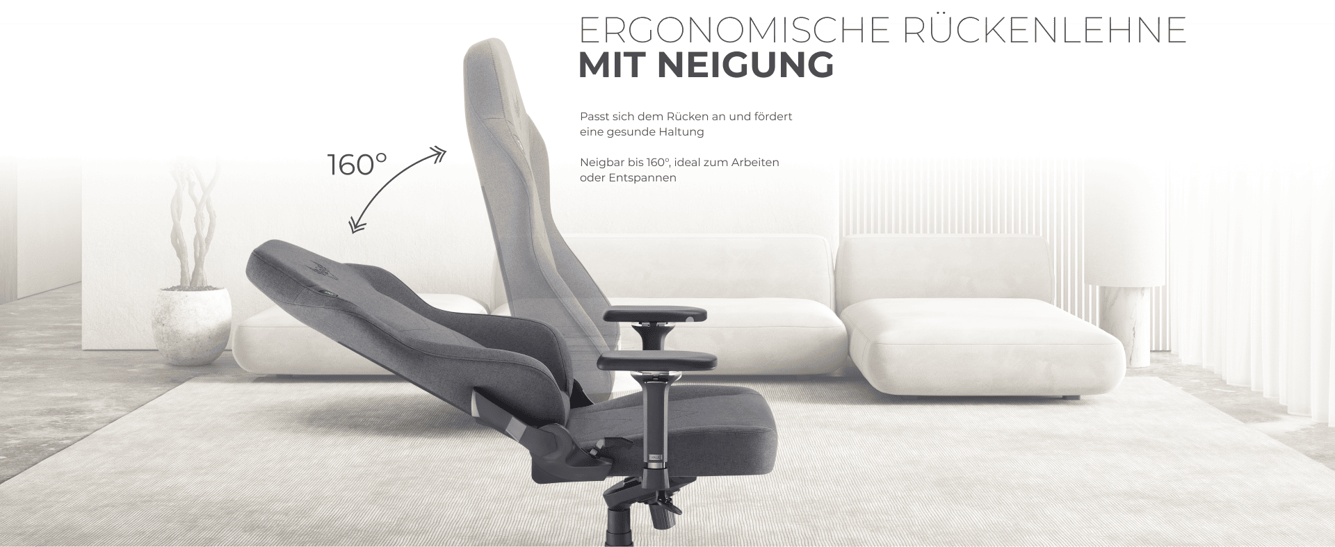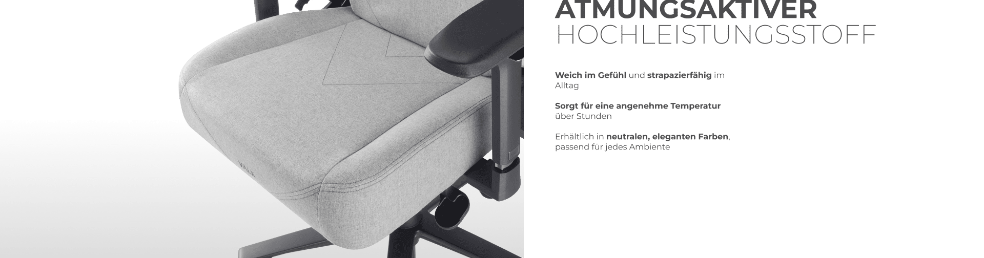 Ein Gaming-Stuhl aus Premium-Stoff, dezent und edel, geschaffen für alle, die höchsten Komfort und Leistung suchen.