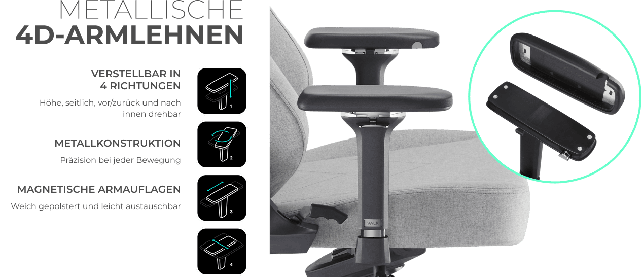 - Austauschbare magnetische Armauflagen
