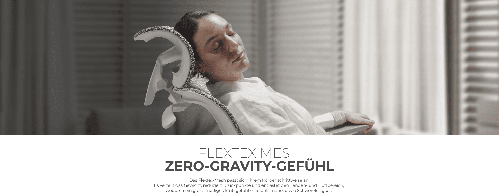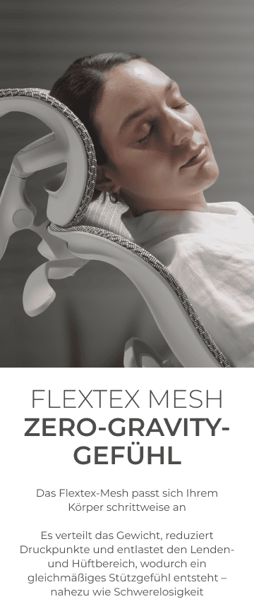 - Atmungsaktives Flextex®-Mesh: Schwerelosigkeitsgefühl