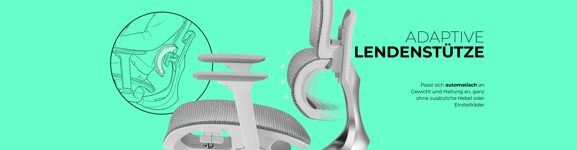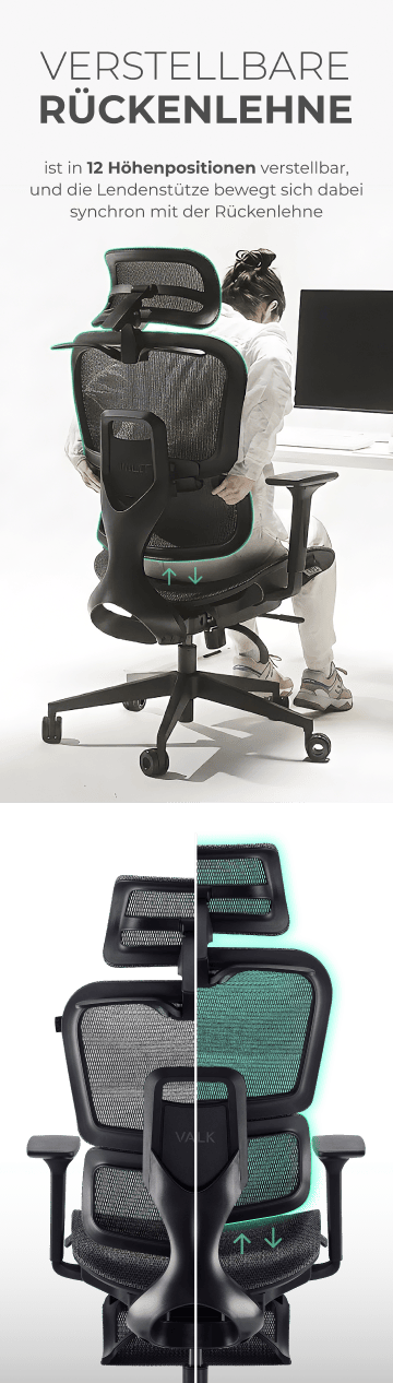 - Höhenverstellbar in 12 Positionen (6 cm) mit integrierter Lendenstütze