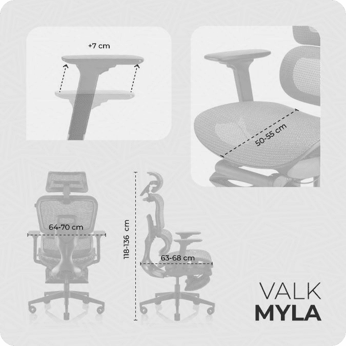MYLA ist unser komfortabelster, elegantester und professionellster ergonomischer Mesh-Stuhl. Ein Premium-Bürostuhl mit VALK-DNA, entwickelt für Homeoffice, Studium und intensives Gaming, ohne Kompromisse beim Design.
