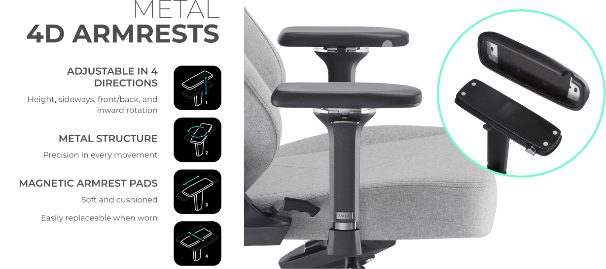 Interchangeable magnetic armrest pads - Cushions