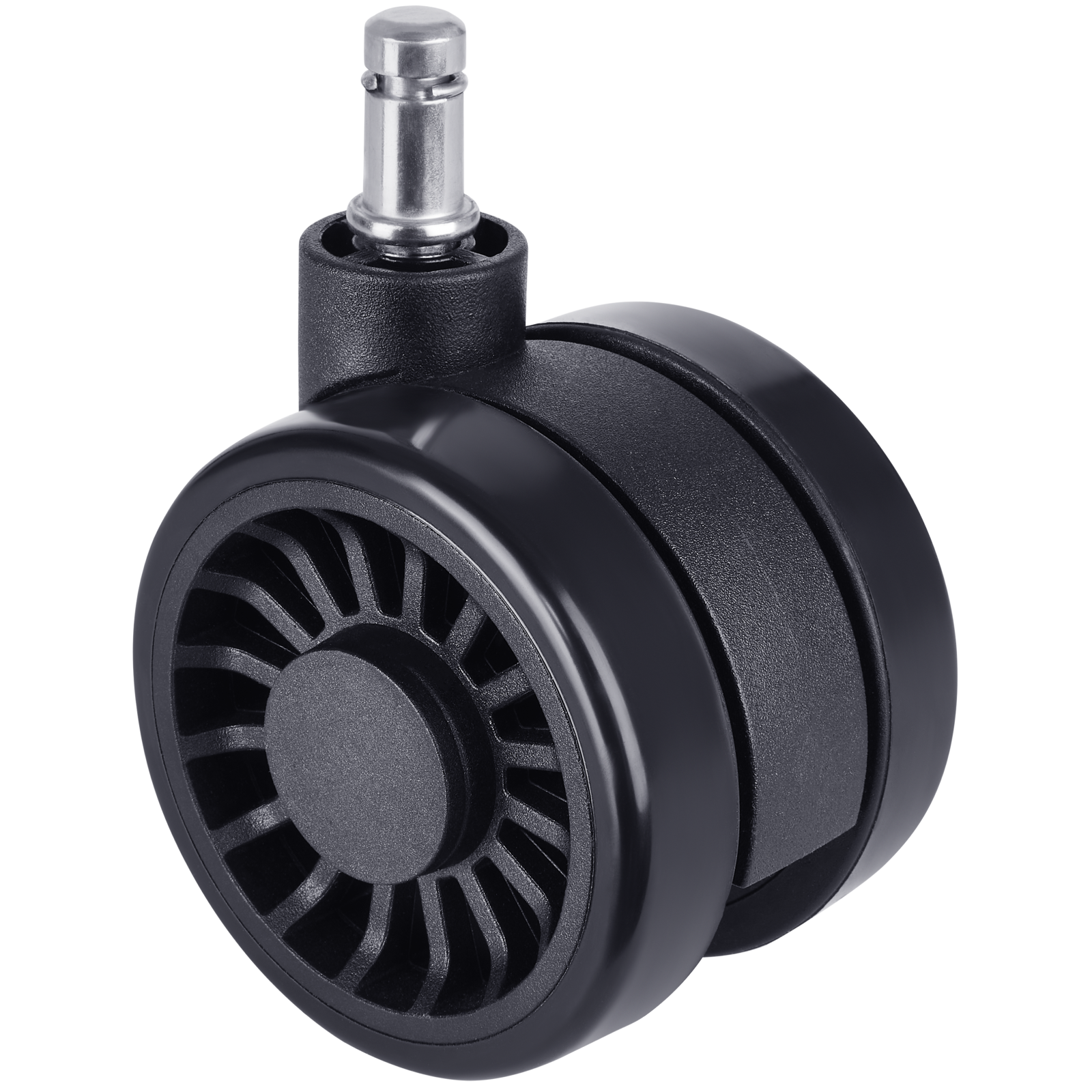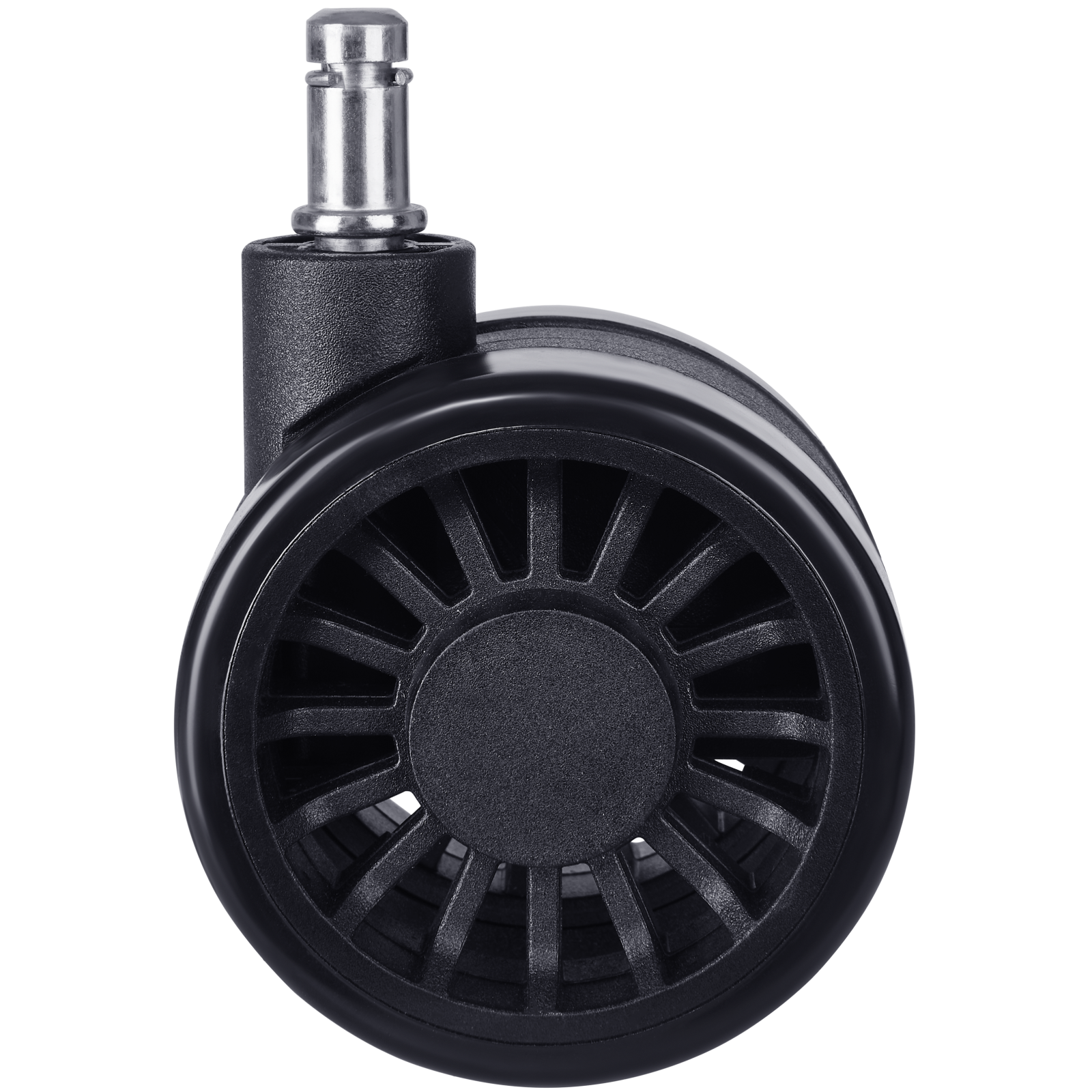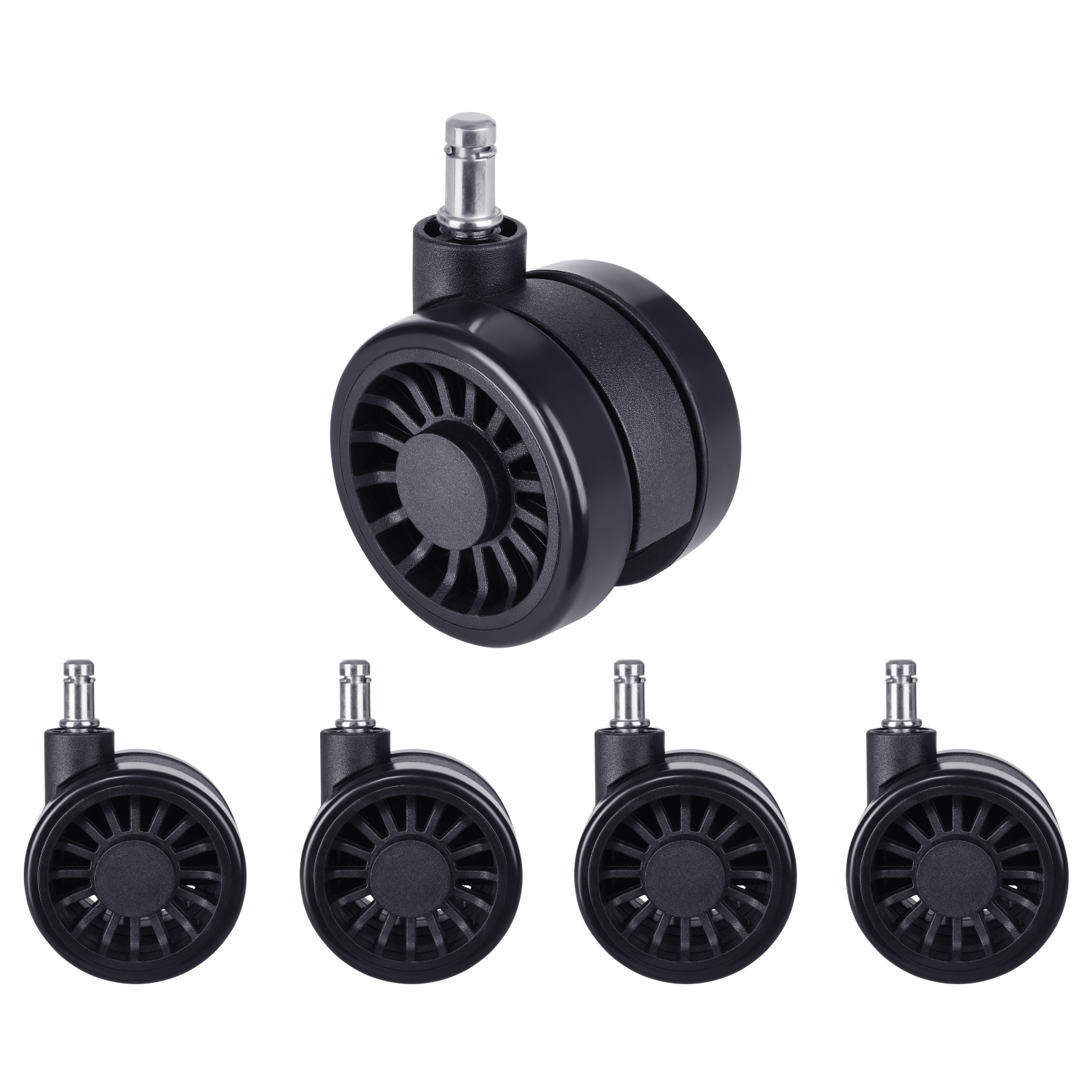 Set of 5 replacement wheels for gamer chairs, office chairs or desk chairs, made of high resistance nylon and covered with rubber to offer a fluid and silent movement on all types of floors.