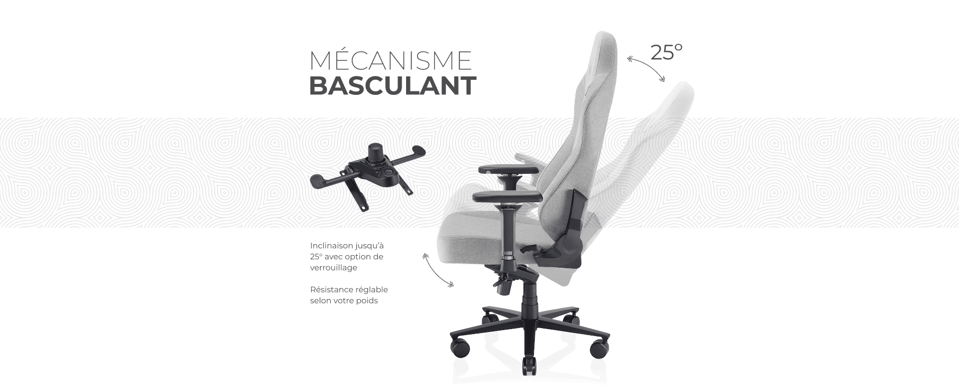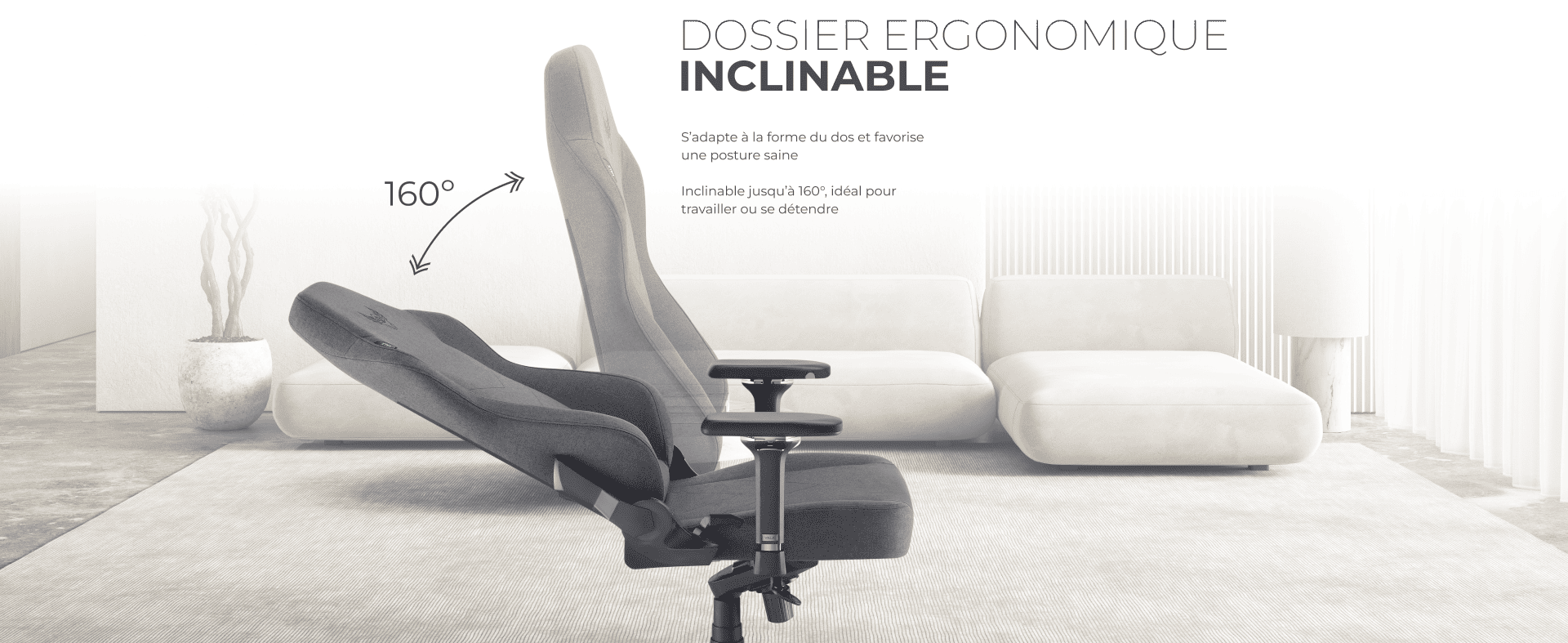 Une chaise gaming en tissu premium, sobre et raffinée, créée pour ceux qui recherchent confort et performance au plus haut niveau.