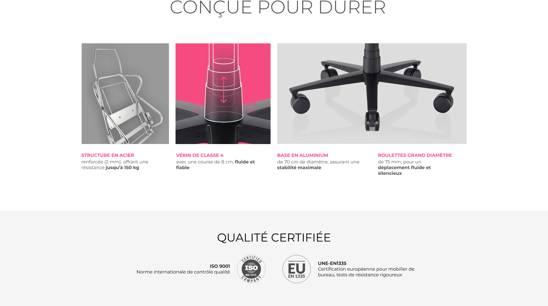 - Rembourrage : mousse moulée à froid - 60 kg/m3
