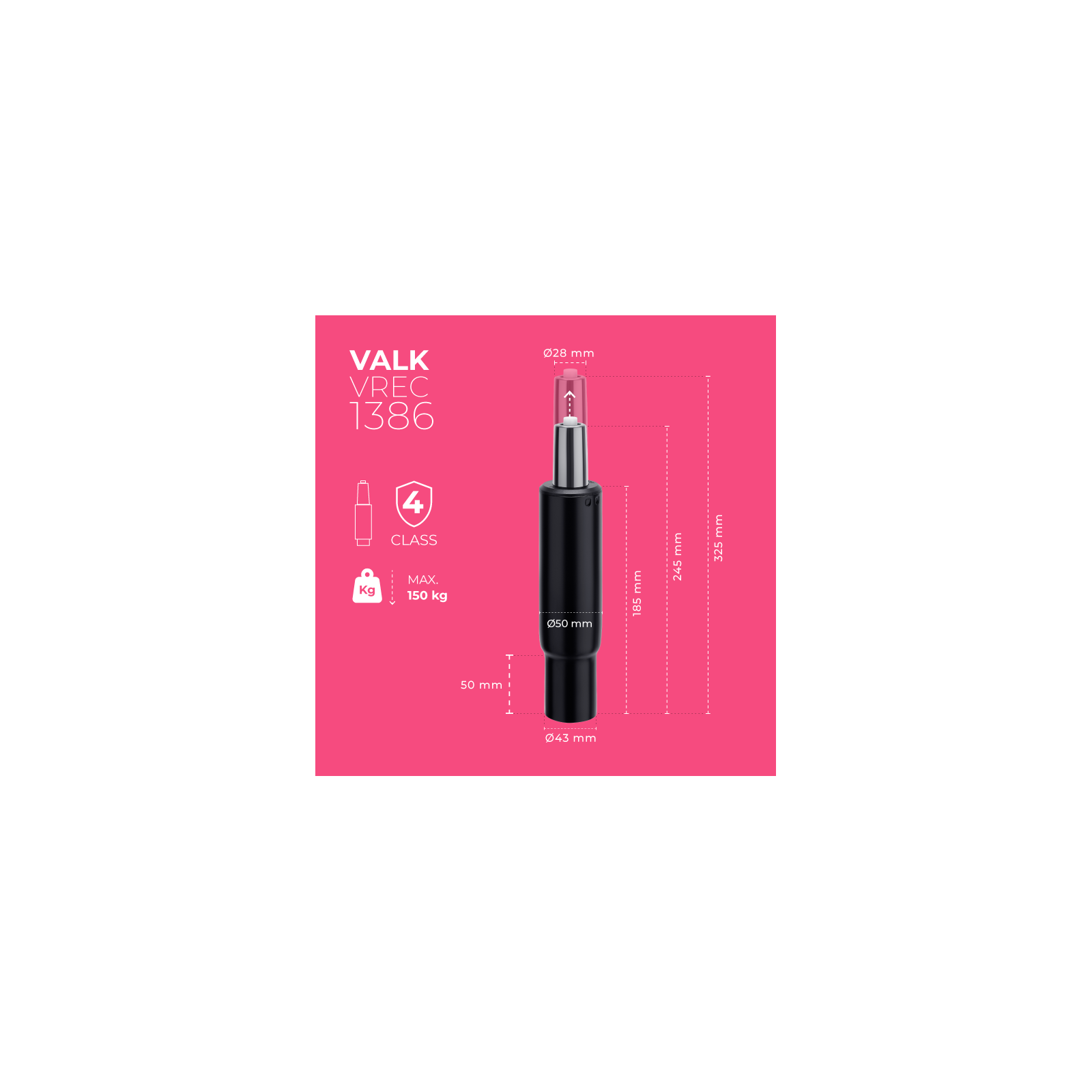 Vérin à gaz de rechange pour chaise gaming, chaise de bureau ou chaise d’ordinateur, fabriqué en acier noir. Conçu pour les chaises avec mécanisme multifonction et un diamètre de base de 50 mm.